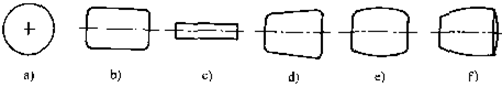 e)對稱型球(qiú)面滾子 f)非對稱型(xing)球面滾子
