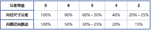 向(xiàng)心軸承各公差等(děng)級允差值之間的(de)比例關系: