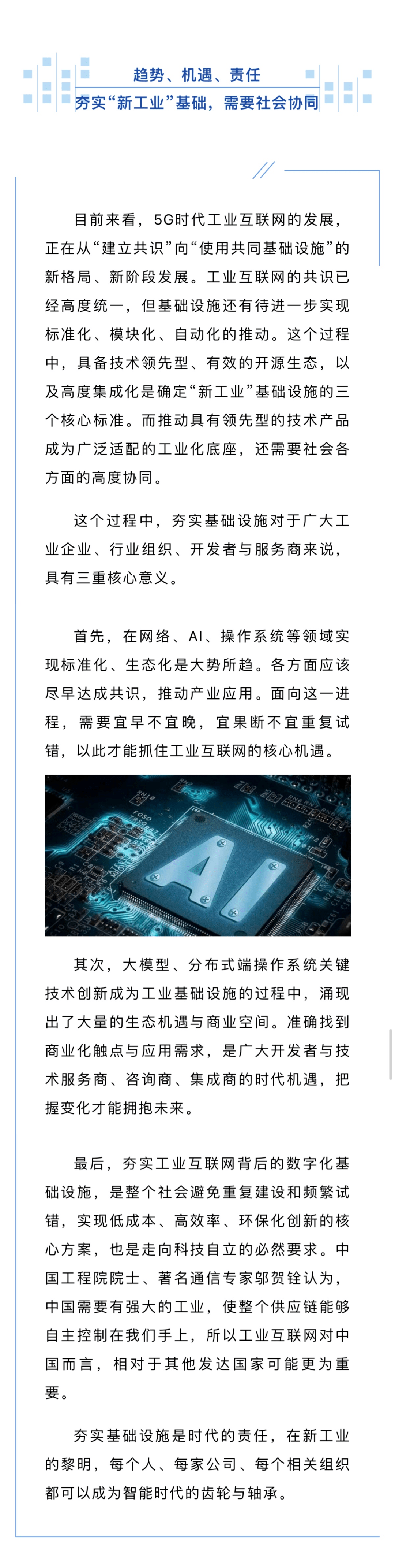 如(rú)今,借助(zhù)5G發展推(tuī)動工業(ye)化升級(ji),以工業(yè)互聯網(wang)為💛技術(shù)🧡基礎持(chi)續解放(fang)生産力(lì)已經成(cheng)為社會(huì)共識。但(dàn)這條路(lu)如☎️果缺(quē)乏産業(ye)基礎的(de)标準化(hua)、模塊化(hua)、自動化(hua),很可能(neng)會走上(shàng)與工業(yè)初心背(bèi)道而馳(chí)的方向(xiàng)。